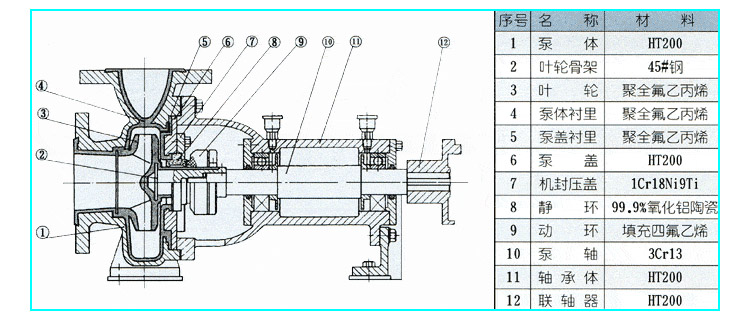 泵的密封型式采用填料密封或機(jī)械密封,由用戶(hù)根據(jù)需要適用,同時(shí)根據(jù)需要允許采用適合于ISO3069規(guī)定的密封空腔尺寸和其他結(jié)構(gòu)的軸封型式,如帶波紋管的機(jī)械密封和付葉輪密封等等。