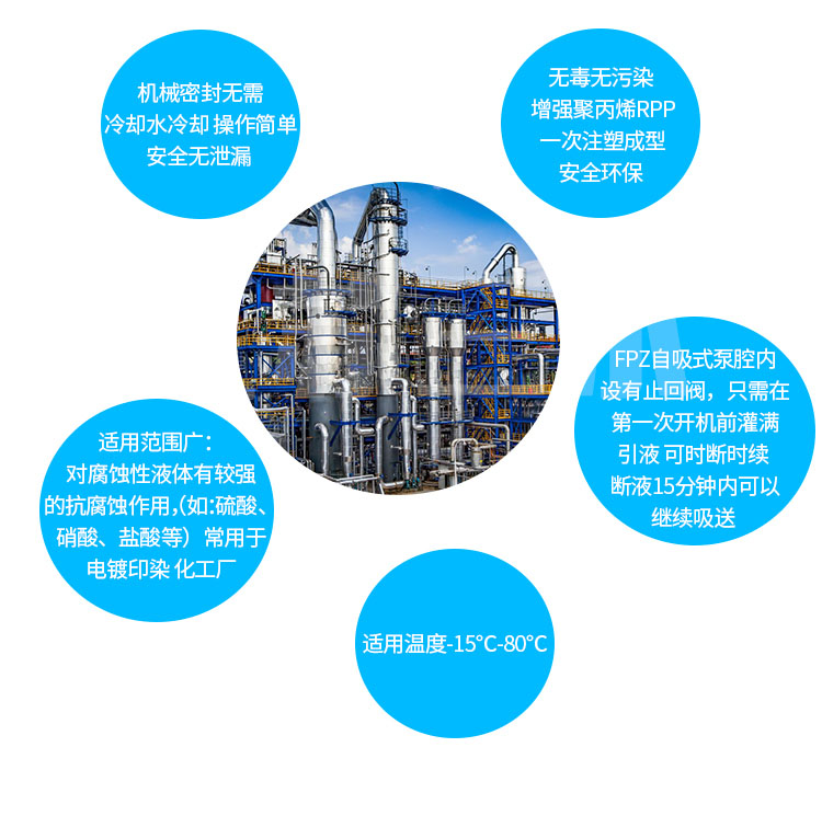 廣泛應(yīng)用于化工、食品、制藥、電鍍、造紙、環(huán)保、水處理等部門,輸送酸、堿、鹽等腐蝕性液體。