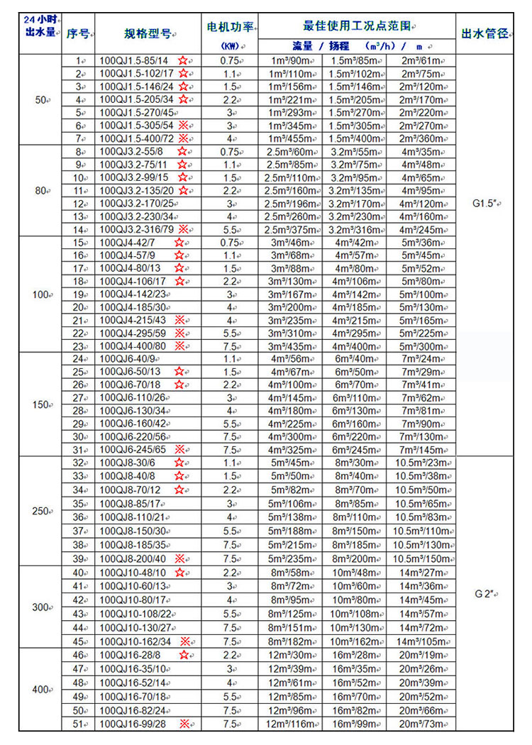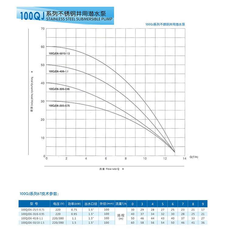 100QJ井用潛水泵產(chǎn)品選型: