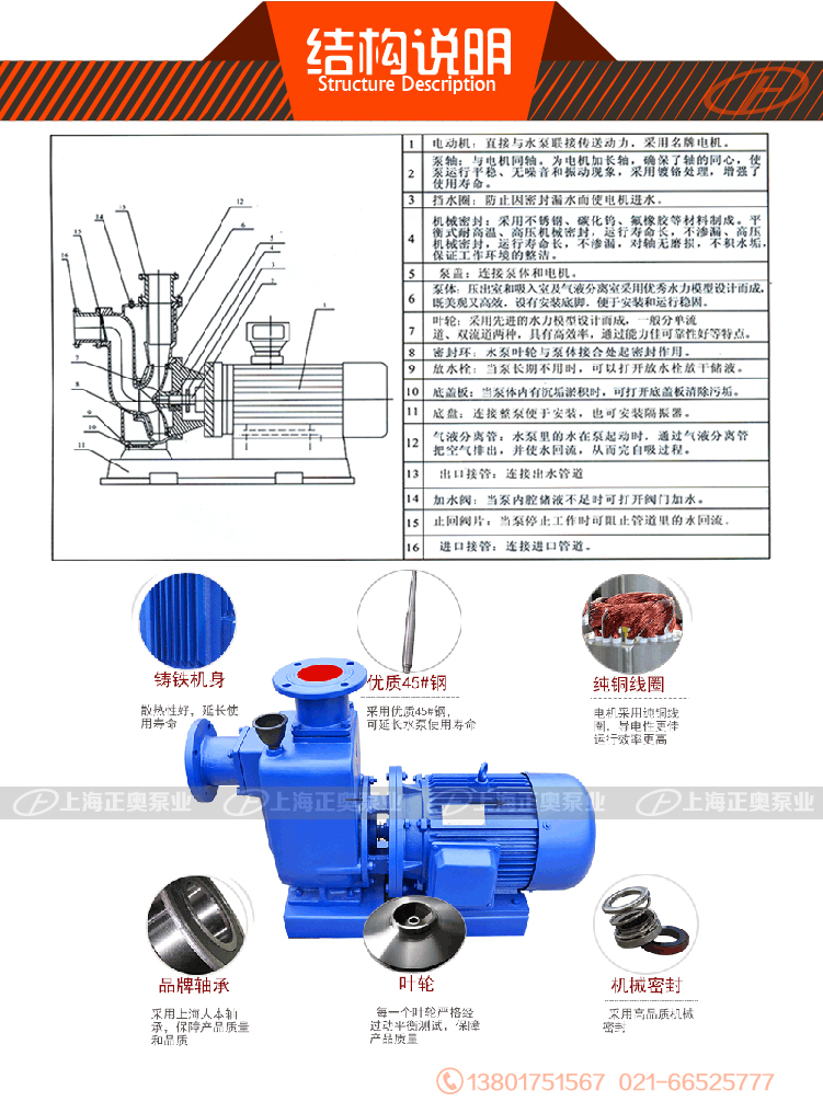 6、結(jié)構(gòu)獨(dú)特、自吸性能好,工作前只需保證泵體內(nèi)儲有定量引液即可。