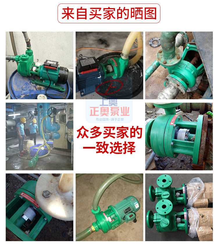 正奧公司生產(chǎn)的101型、102型、103型、104型、105型泵系單吸直聯(lián)式塑料離心泵是一種小型塑料泵,產(chǎn)品結(jié)構(gòu)、體積小、重量輕、耗電省、耐酸堿、密封好、維修方便。FS型工程塑料離心泵系列產(chǎn)品均采用機(jī)械密封,并引進(jìn)國(guó)際工藝和技術(shù)配方,全使用改性ABS(工程塑料)作為泵的材質(zhì),在同系列的塑料泵產(chǎn)品中,充分顯示了其結(jié)構(gòu)重量輕、體積小、壽命長(zhǎng)等特點(diǎn),廣泛應(yīng)用于化工,食品、制藥、電鍍、造紙、環(huán)保、水處理等部門,輸送酸、堿、鹽等腐蝕性液體。其中104型采用220V電壓,可供家庭選用。