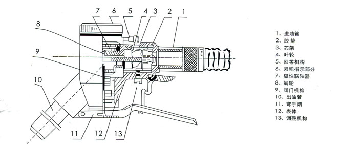 4、計(jì)量加油槍在出廠前已調(diào)整校驗(yàn)合格,用戶(hù)一般不能隨意拆卸,必須拆開(kāi)時(shí),應(yīng)按下列順序:(1)擰下歸零按鈕套,取下按鈕;(2)擰下表蓋;(3)用專(zhuān)用扳手?jǐn)Q下壓圈;(4)取下齒輪傳動(dòng)機(jī)構(gòu);(5)擰下葉輪室上邊的連接介輪。(6)卸下進(jìn)入管;(7)把葉輪室部分從槍體的進(jìn)入口取出。