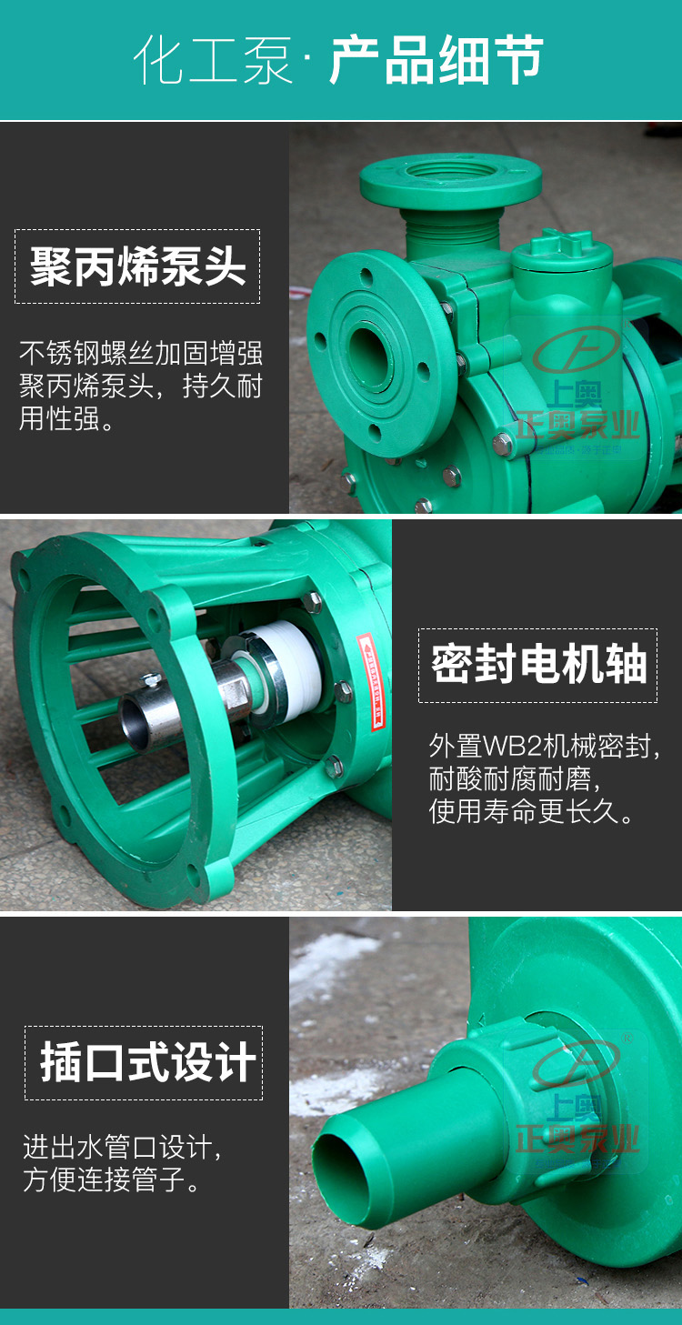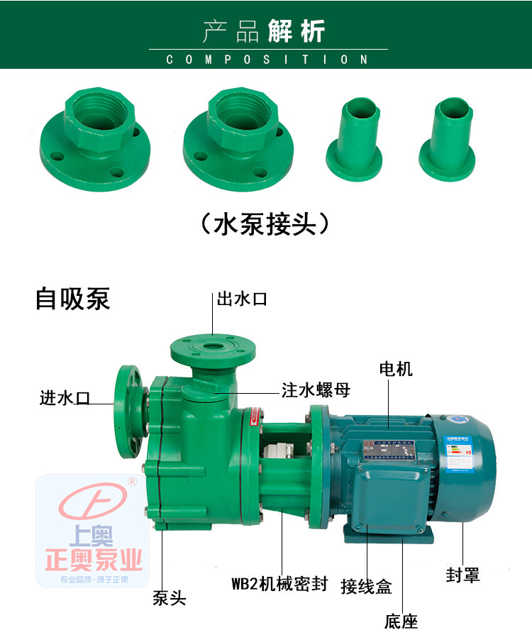 上奧牌FPZ自吸泵采用增強聚丙烯(CFR-PP)一次注塑成型泵腔內(nèi)設(shè)有吸液室、儲液室、回液止回閥、氣液分離室、回流孔。只需在開機前灌引液,以后不必重復(fù)灌注引液,在吸送介質(zhì)時,液體可時斷時續(xù),斷液15分鐘內(nèi)來液可繼續(xù)吸送,機械密封不需另加冷卻水冷卻,操作簡便,是取代液下泵的產(chǎn)品。CFR-PP材質(zhì)耐一般酸堿鹽類,工作溫度-14℃~80℃。