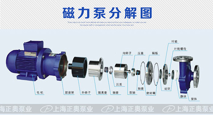 磁力泵以靜密封取代動(dòng)密封,使泵的過(guò)流部件處于完全密封狀態(tài),底徹解決了其他泵機(jī)械密封無(wú)法避免的跑、冒、滴之弊病。磁力泵選用耐腐蝕、高強(qiáng)度的工程塑料、鋼玉陶瓷、不銹鋼等作為制造材料,因此它具有良好的抗腐蝕性能,并可以使被輸送介質(zhì)免受污染。