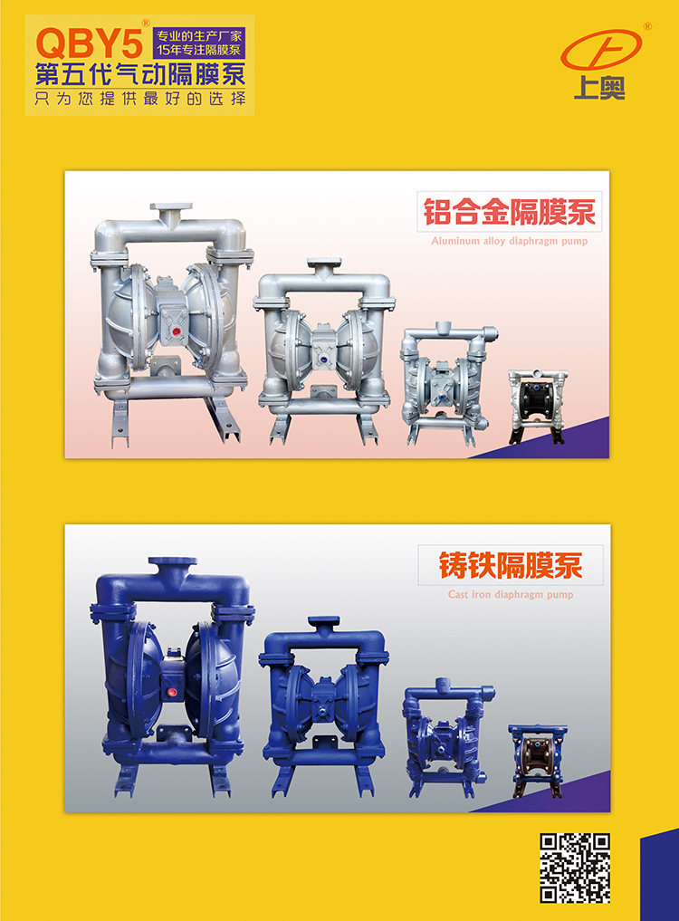 正奧公司生產(chǎn)的隔膜泵共有十二種規(guī)格。進出口尺寸分別為1/4”(10mm)、1/2”(15mm)、3/4”(20mm)、1”(25mm)、1.2”(32mm)1.5”(40mm)、2”(50mm)、2.5”(65mm)3”(80mm)、4”(100mm)流體部件材質(zhì)有:鋁合金、鑄鐵、聚丙烯、不銹鋼、隔膜根據(jù)不同膜片材質(zhì)分別有:丁晴橡膠、氯丁橡膠、聚乙烯、聚膠、聚醚橡膠、氟橡膠、氟塑料、特氟隆。以滿足不同液體介質(zhì)的需要。
