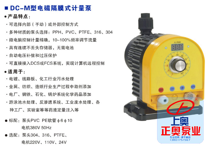 一、DC-M型電磁隔膜式計量泵產(chǎn)品特點(diǎn):