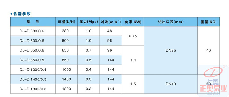 三、DJ-D型機(jī)械驅(qū)動(dòng)隔膜式計(jì)量泵技術(shù)參數(shù):