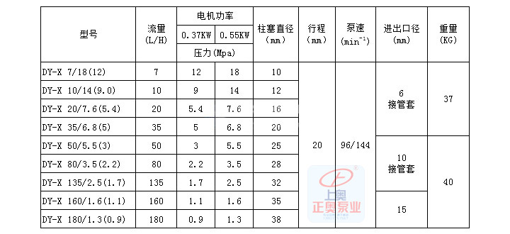 三、DY-X型液壓隔膜式計(jì)量泵參數(shù)選型: