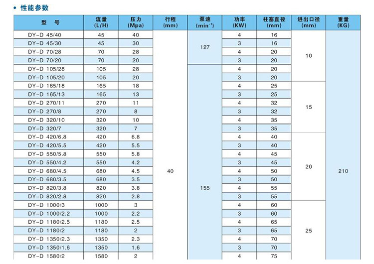 三、DY-D型液壓隔膜式計量泵參數(shù)選型: