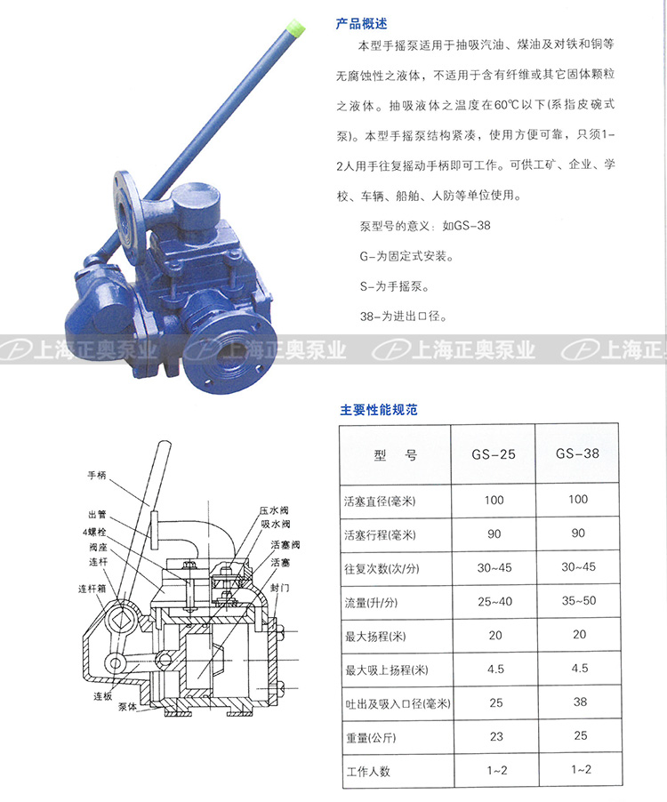 GS-38手搖泵參數(shù):