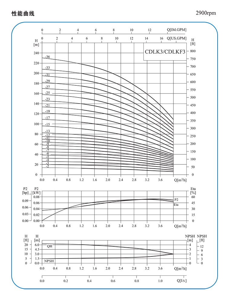 4.泵的使用參照加粗線的性能范圍,以防流量過量水產(chǎn)生過熱和流量過大使電機(jī)過載等。