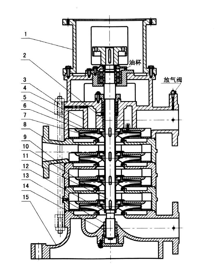 LG系列泵為立式安裝,電機(jī)軸與泵軸通
