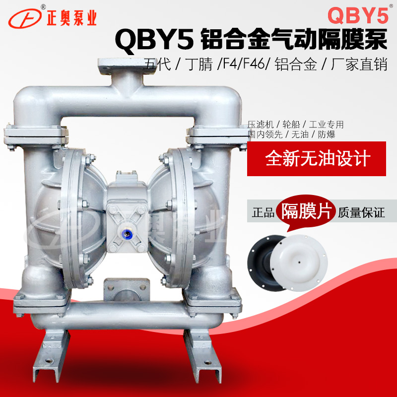 全新第五代系列QBY5型氣動隔膜泵,無油氣動隔膜泵,高吸程高流量隔膜泵,可替代進口隔膜泵等等品牌,壓濾機專用隔膜泵,礦用氣動隔膜泵,船用氣動隔膜泵,工業(yè)專用氣動隔膜泵。,取代部份離心泵、螺桿泵,來應用于石化、陶瓷、冶金等行業(yè),產品設計均參考國外隔膜泵樣機。氣動隔膜泵與電動隔膜泵結構緊湊,外形美觀,體積小,噪聲低,運行可靠,使用維修方便,廣泛用于石油、化工、制藥、電鍍、印染、食品、科研等單位抽送酸、堿、油類及稀有貴重液、毒液、揮發(fā)性液體,以及循環(huán)水設備配套特別是易漏、易爆、易燃液體的抽送。